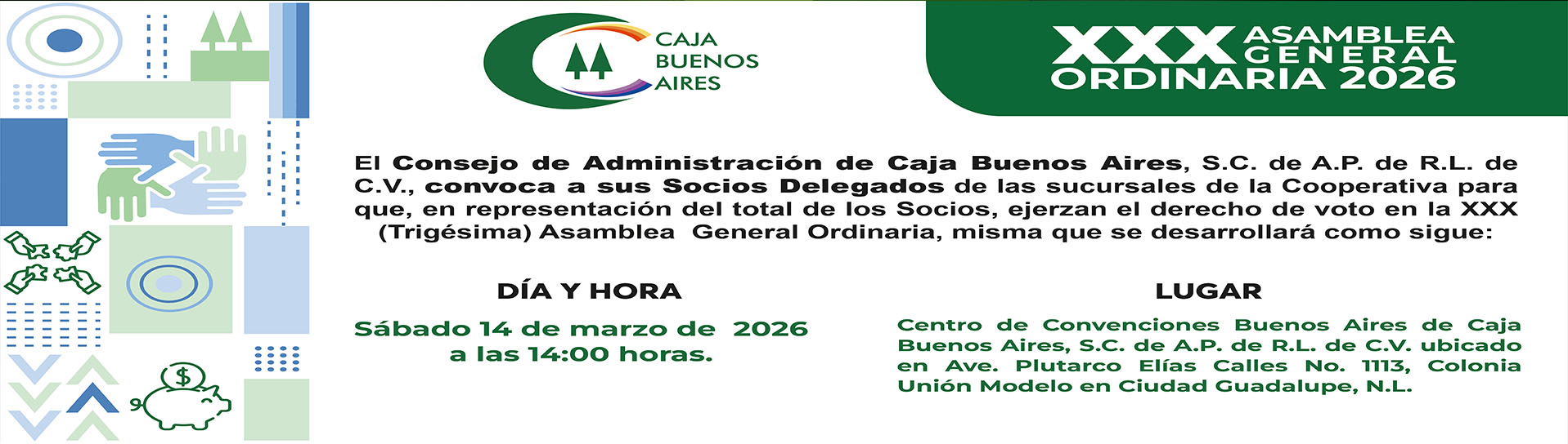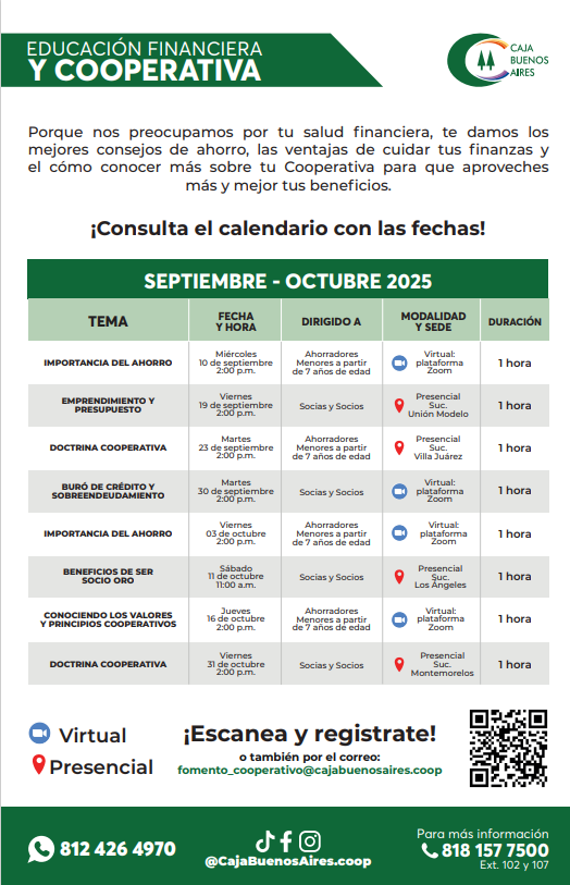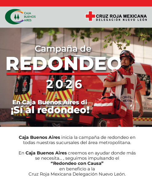 Caja Buenos Aires NO realiza trámites fuera de sus sucursales oficiales. Les recordamos que bajo ninguna circunstancia se requieren depósitos a cuentas externas como promesa de autorización de préstamos en los servicios exclusivos para los Socios. En caso de recibir opciones contrarias a nuestros procedimientos, favor de notificarlo al: (81) 8157-7500 Ext. 303